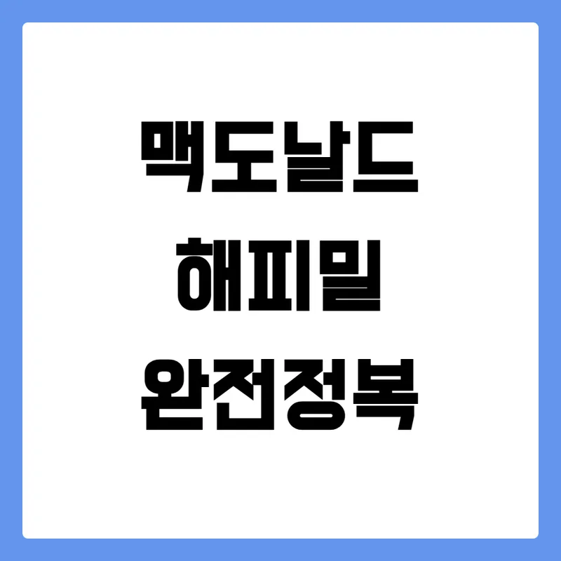 해피밀을 단순한 한 끼 식사로만 생각하지 마세요! 몇 가지 팁만 알아도 훨씬 더 풍성하고 즐거운 경험을 만들 수 있습니다. 지금부터 해피밀 마스터가 되는 꿀팁을 알려드릴게요!